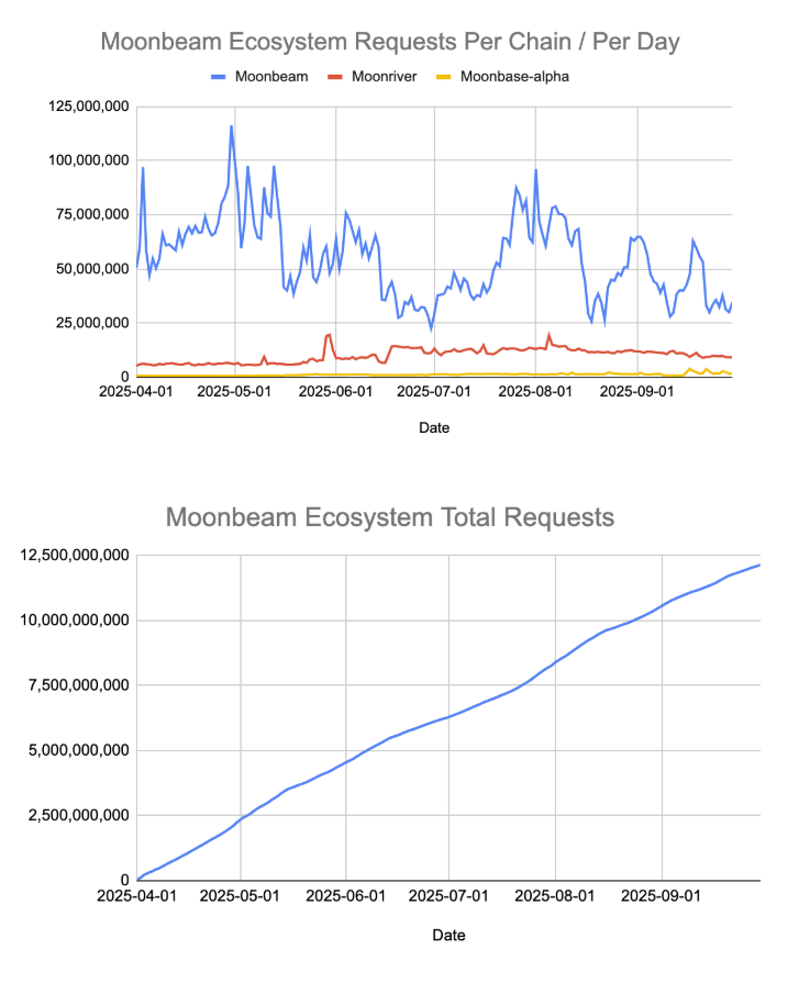 During Q2 2024 and so far in Q3 2025 Dwellir processed 12.1 billion requests for the Moonbeam ecosystem - more than three times the previous 6 months.