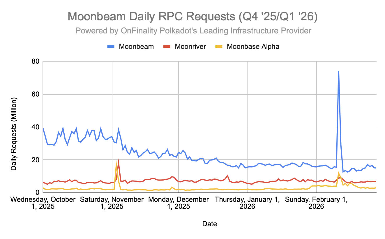 OnFinality’s Moonbeam, Moonriver, and Moonbase Alpha endpoints were funded during Q4 2025 and Q1 2026. Our proposal included trace and debug methods on the public endpoint, but in February we were notified by the Moonbeam team that they weren’t working.